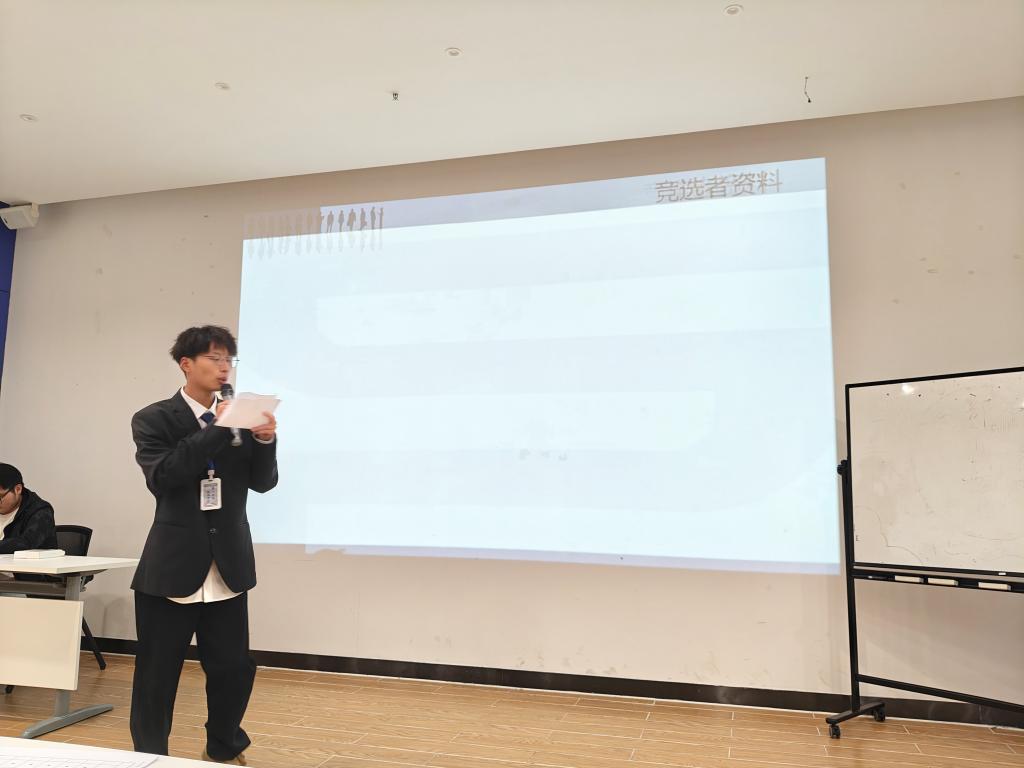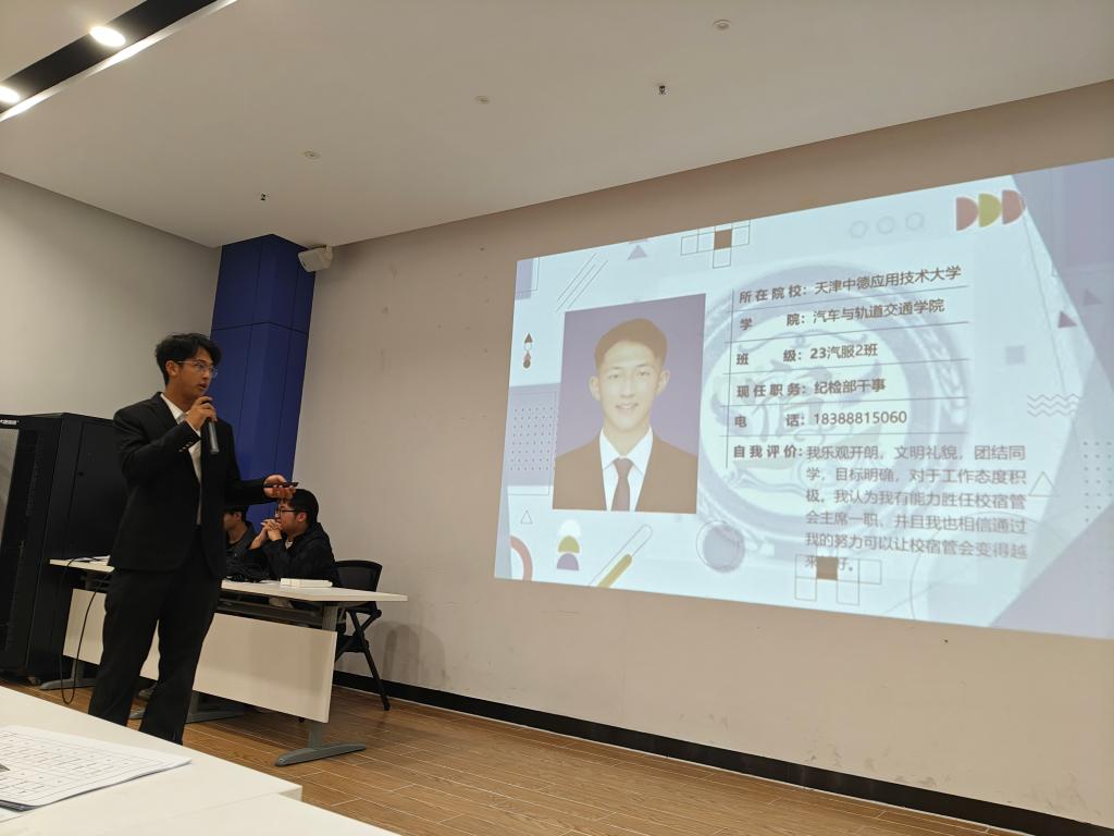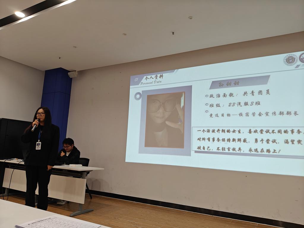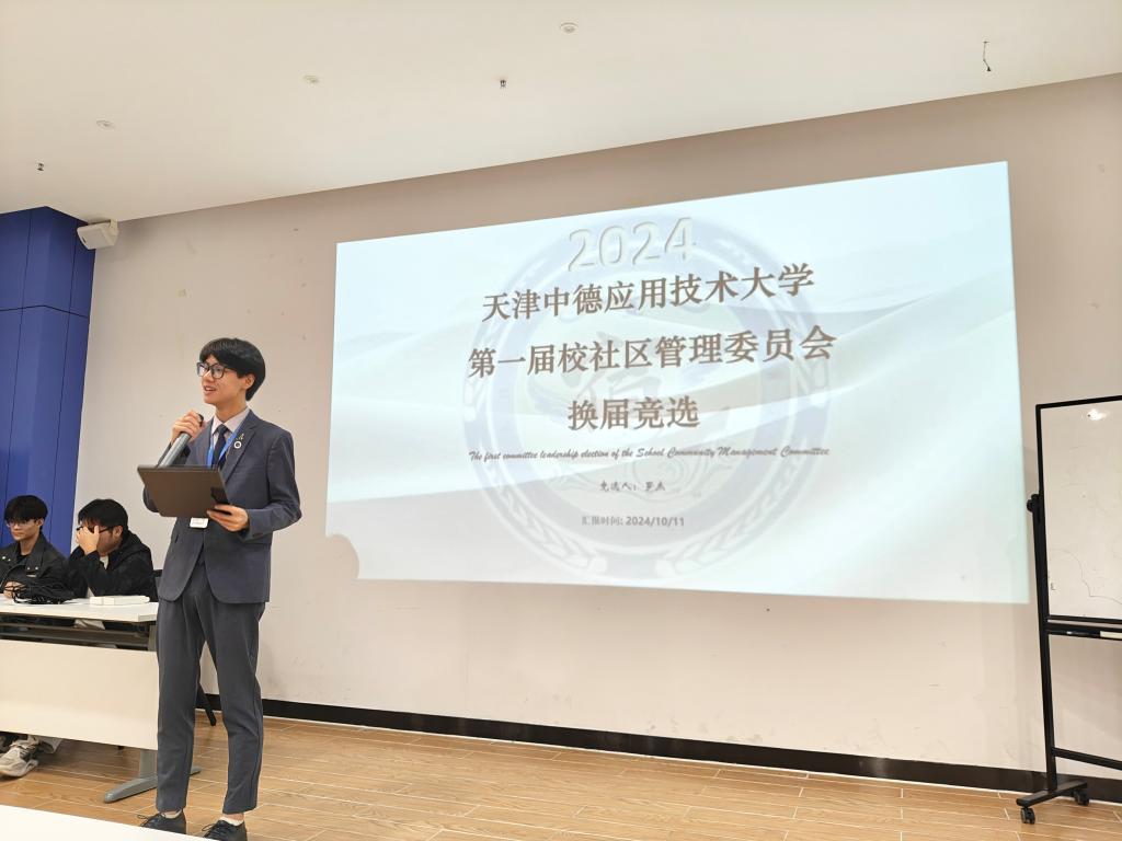 10月11日重阳节,下午17点40分,在E4人防大楼二层会议室举行首届校社区自治管理委员会(简称校社管会)换届大会。16名同学参与竞选,其中罗杰、段体辉、李洁竞选主席,田彬燊、侯哲、马彦斌竞选办公室主任,解宇霏、李佳林、孙甜甜竞选宣传部部长,李鑫、段姝含竞选纪检部部长,赖恒浩竞选生活部部长,冯鑫、侯雨彤、王旭瑞竞选文体部部长,唐敏竞选外联部部长。