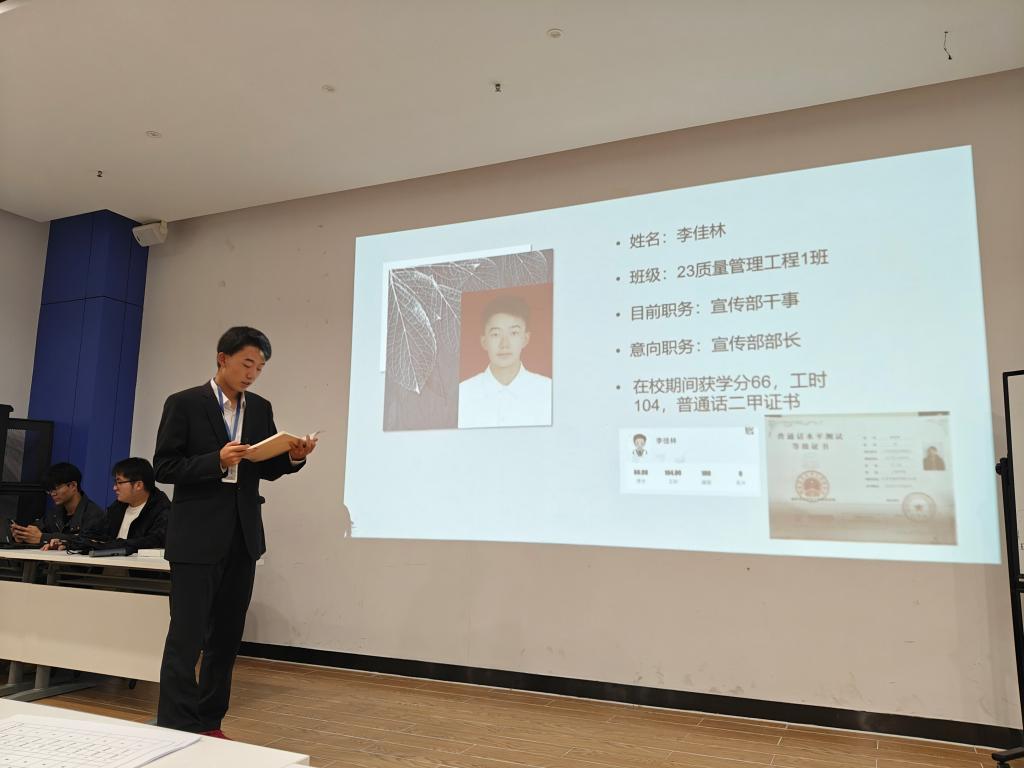 希望新一届主席部长能够充分发挥自己的聪明才智,明确工作职责,带来校社管会全体成员认真工作,共同成才,推动学校一站式学生社区综合管理模式在我校深入发展。