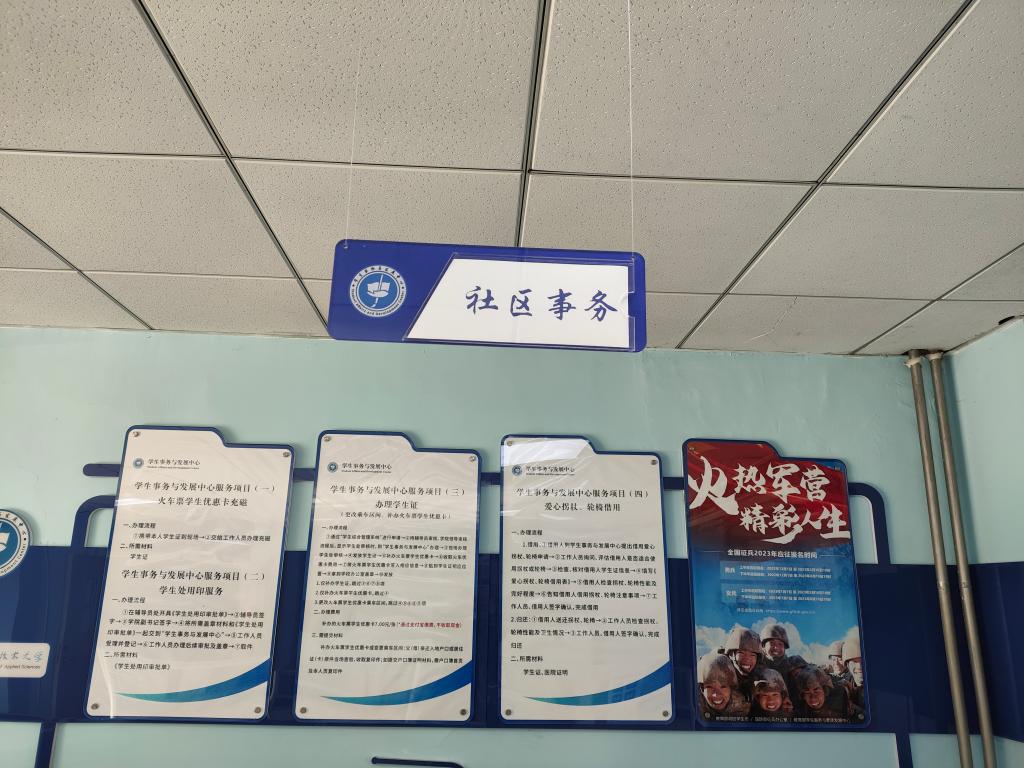 学生事务与发展中心服务内容包括:(1)火车票学生优惠卡充磁;(2)学生处用印服务;(3)办理学生证(更改乘车区间、补办火车票学生优惠卡);(4)爱心拐杖、轮椅借用;(5)失物招领;(6)征兵咨询;(7)宿舍水卡相关业务咨询与办理;(8)宿舍空调服务;(9)社团管理相关业务;第二课堂运营相关业务。